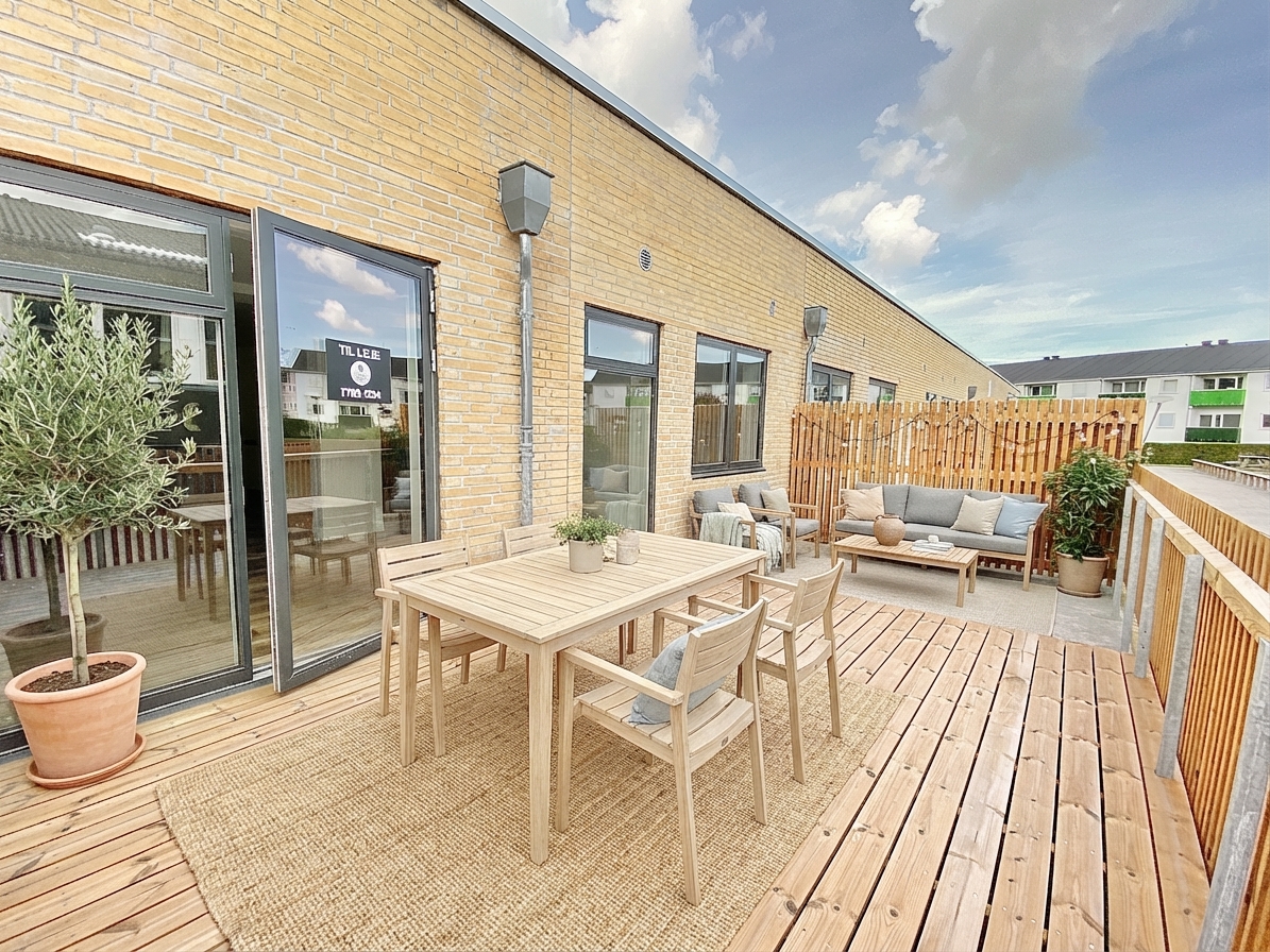 Stuen har et dejligt lysindfald og gode indretningsmuligheder. Her fra er der ydermere adgang til en KÆMPE terrasse..!
