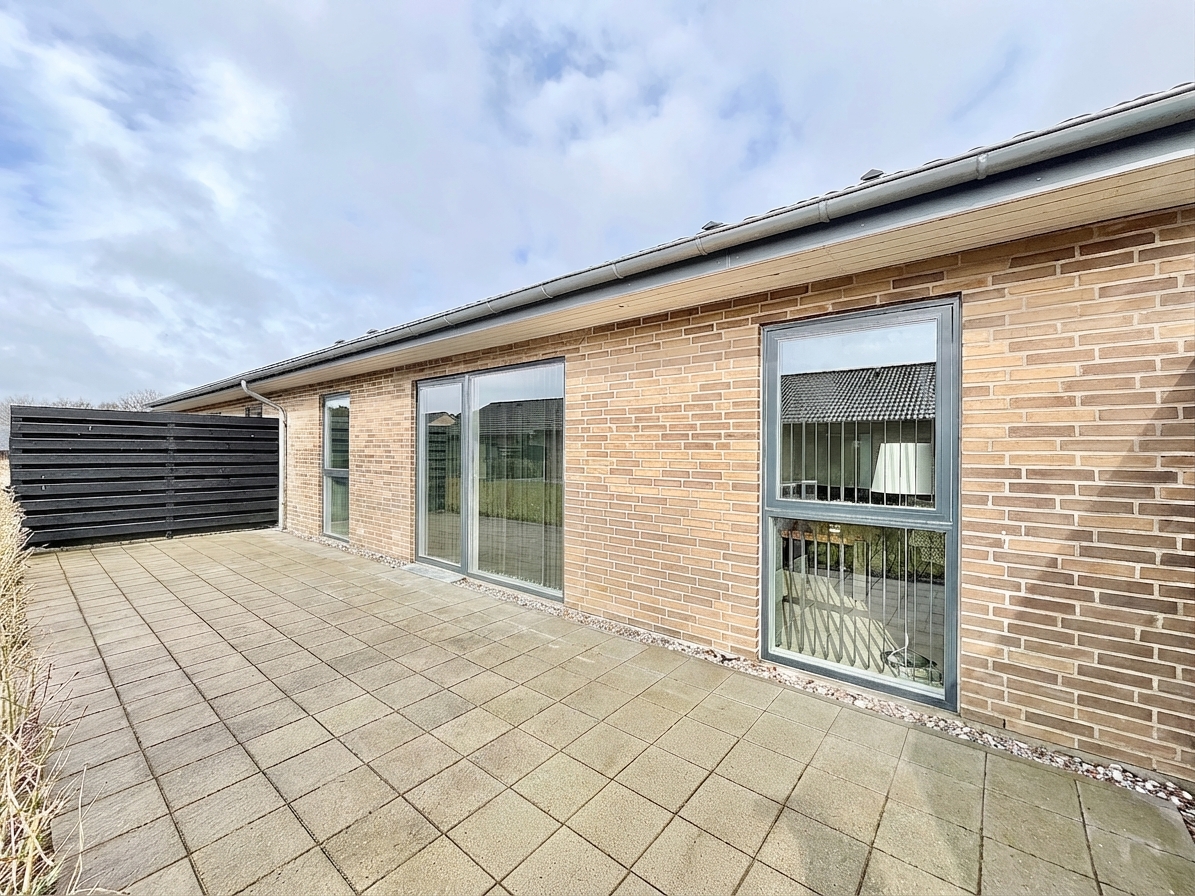 Udendørs får du stor sydvendt privat have, som giver mulighed for afslapning og udeliv i rolige omgivelser tæt på hjemmet.
