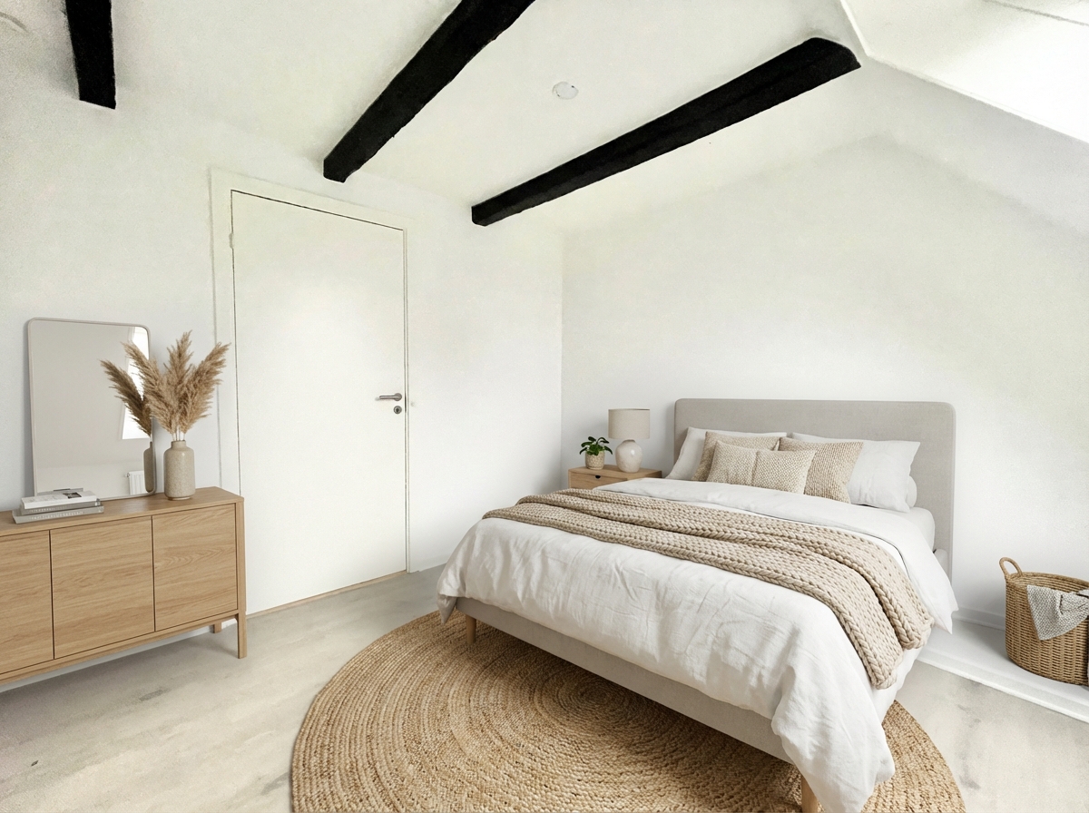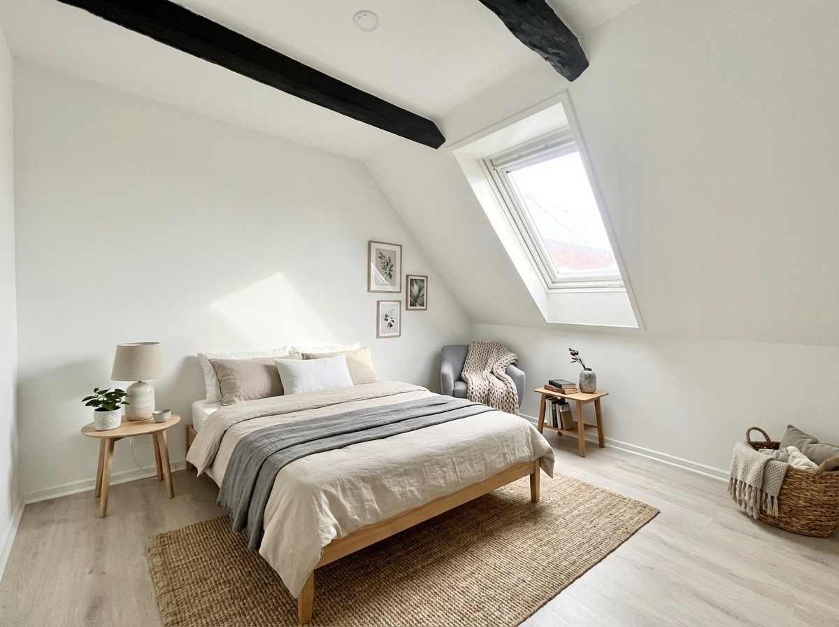 Soveværelset er udnyttet med god plads til seng og indbyggede garderobeskabe.