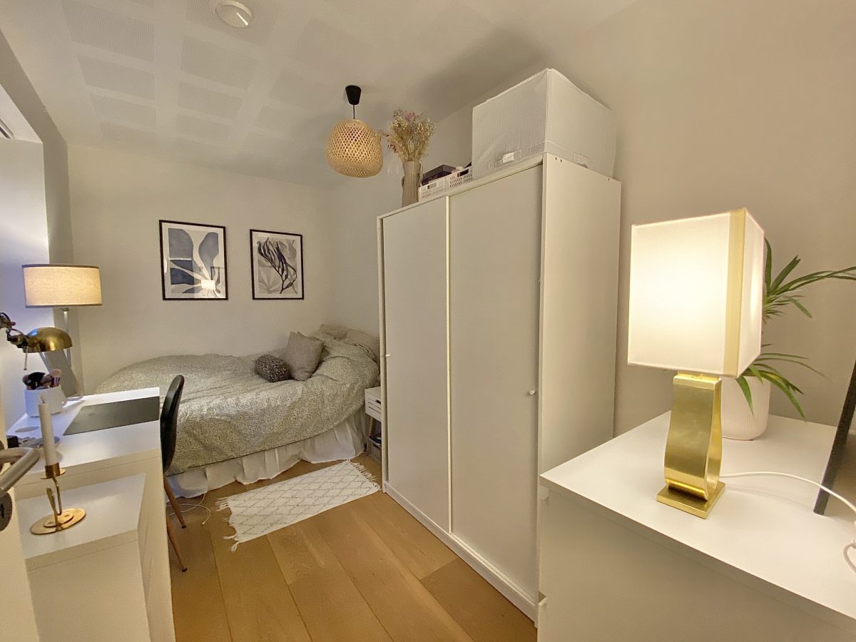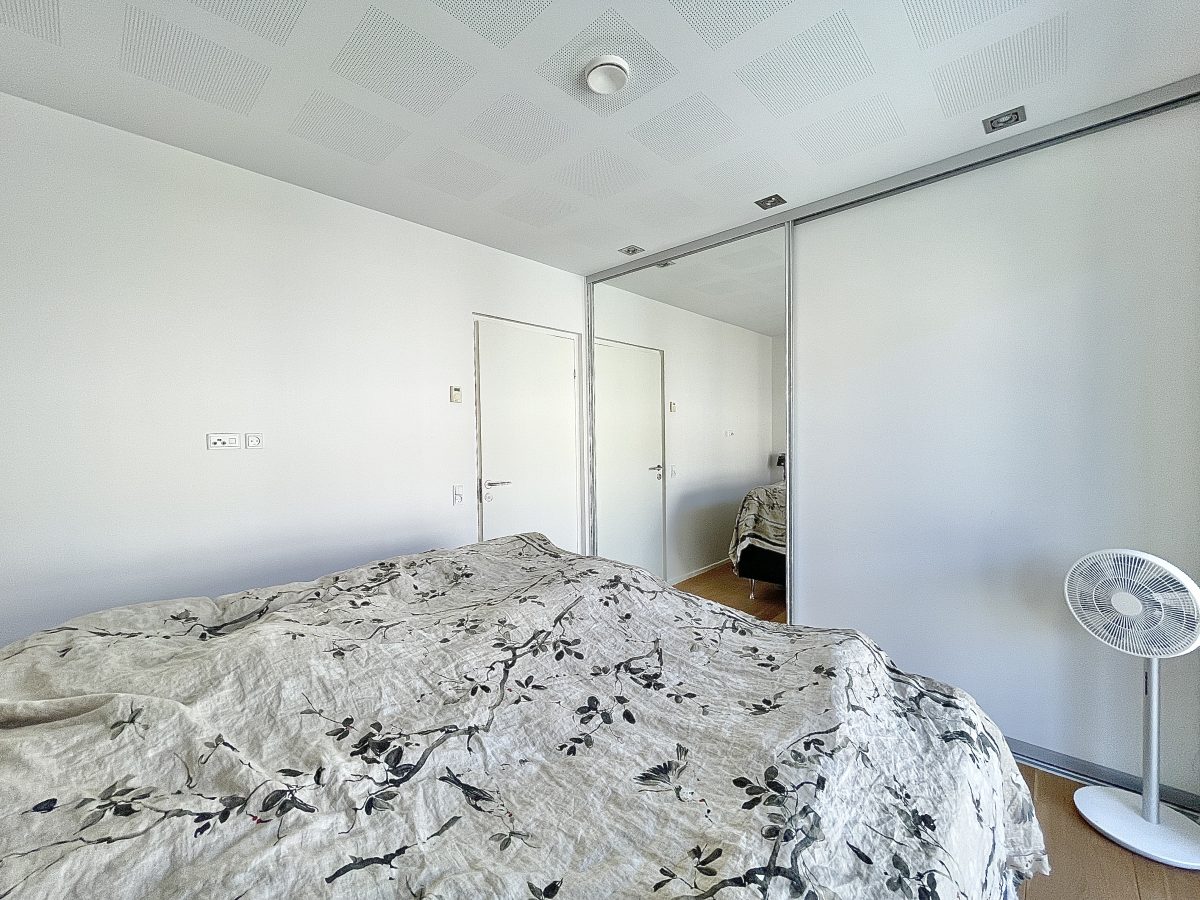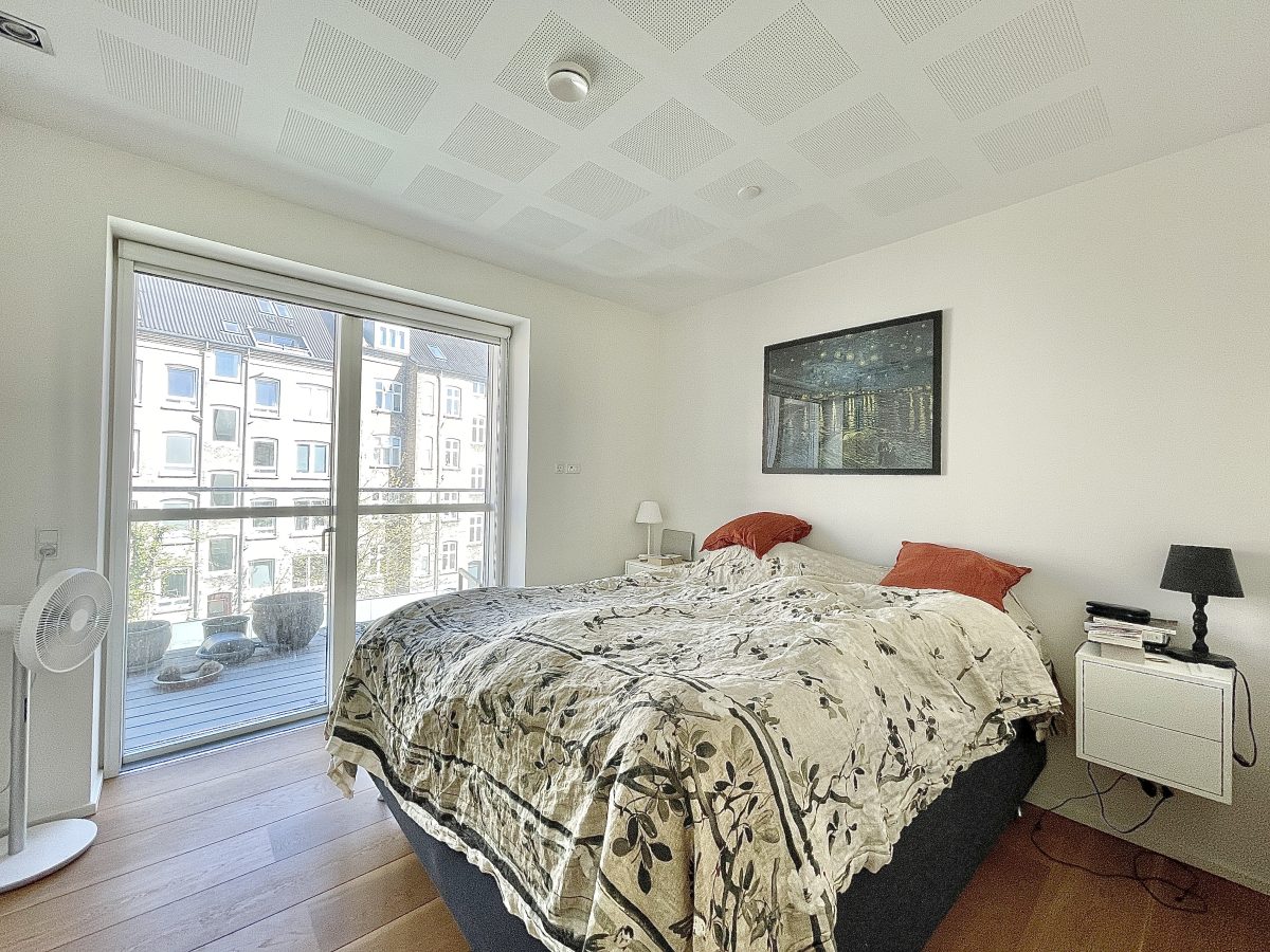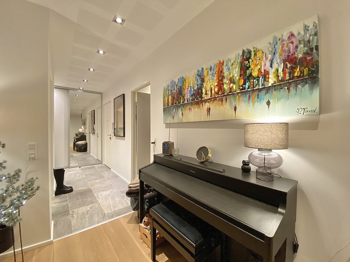 Materialevalget er naturligvis også nøje udvalgt med flotte lyse akustik gipslofter, hvide vægge med filt, flotte trægulve og klinker samt indbygningsspots i hele boligen. Derudover er både køkken- og badeværelsesinventar også i indbydende lyse farver og med mange flotte detaljer.