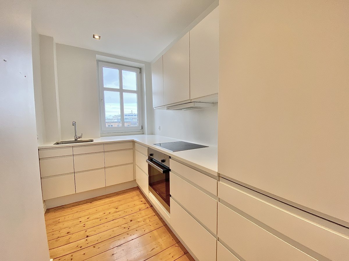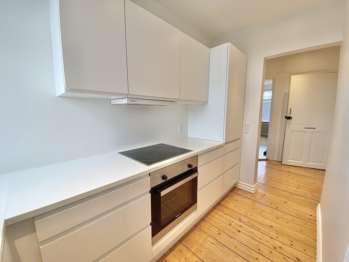 Køkkenet er blevet flot renoveret med nye hvidevarer og tilbyder et behageligt naturligt lysindfald.