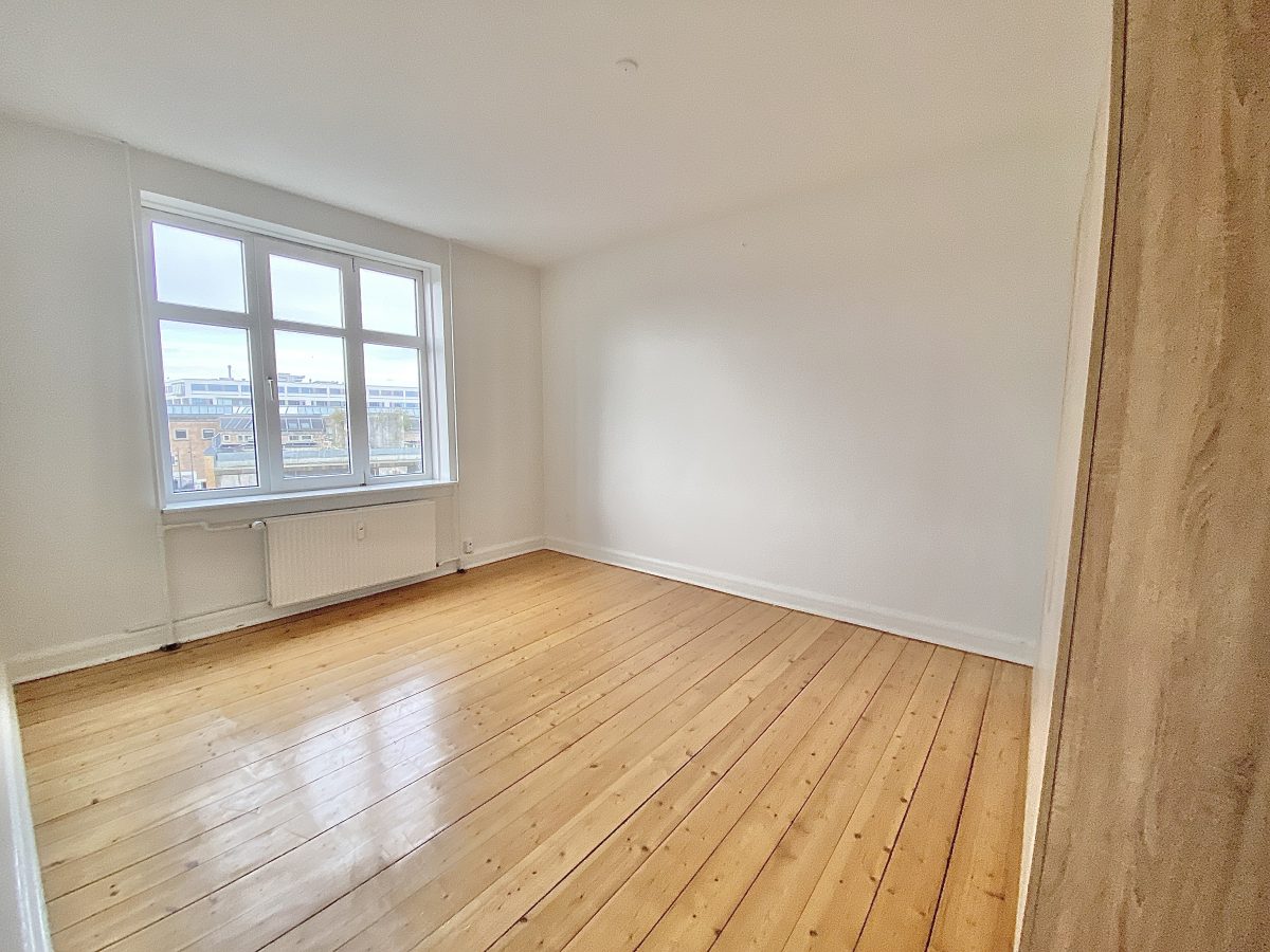 Soveværelset byder ligeledes på generøse kvadratmeter og er placeret mod den rolige baggård, hvilket sikrer en fredelig atmosfære.