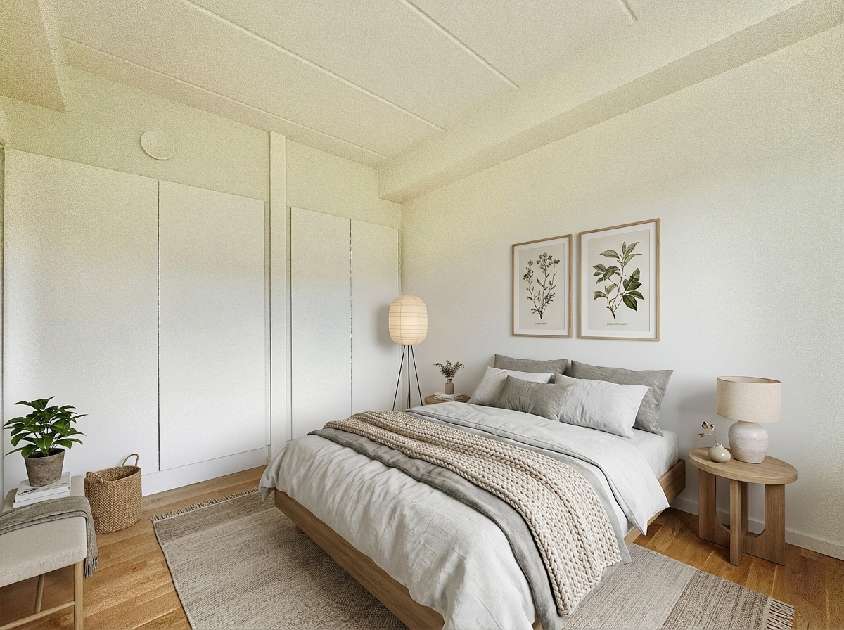 Soveværelset er ligeledes godt udnyttet med kvadratmeter, hvor der ydermere er indbyggede skabe.