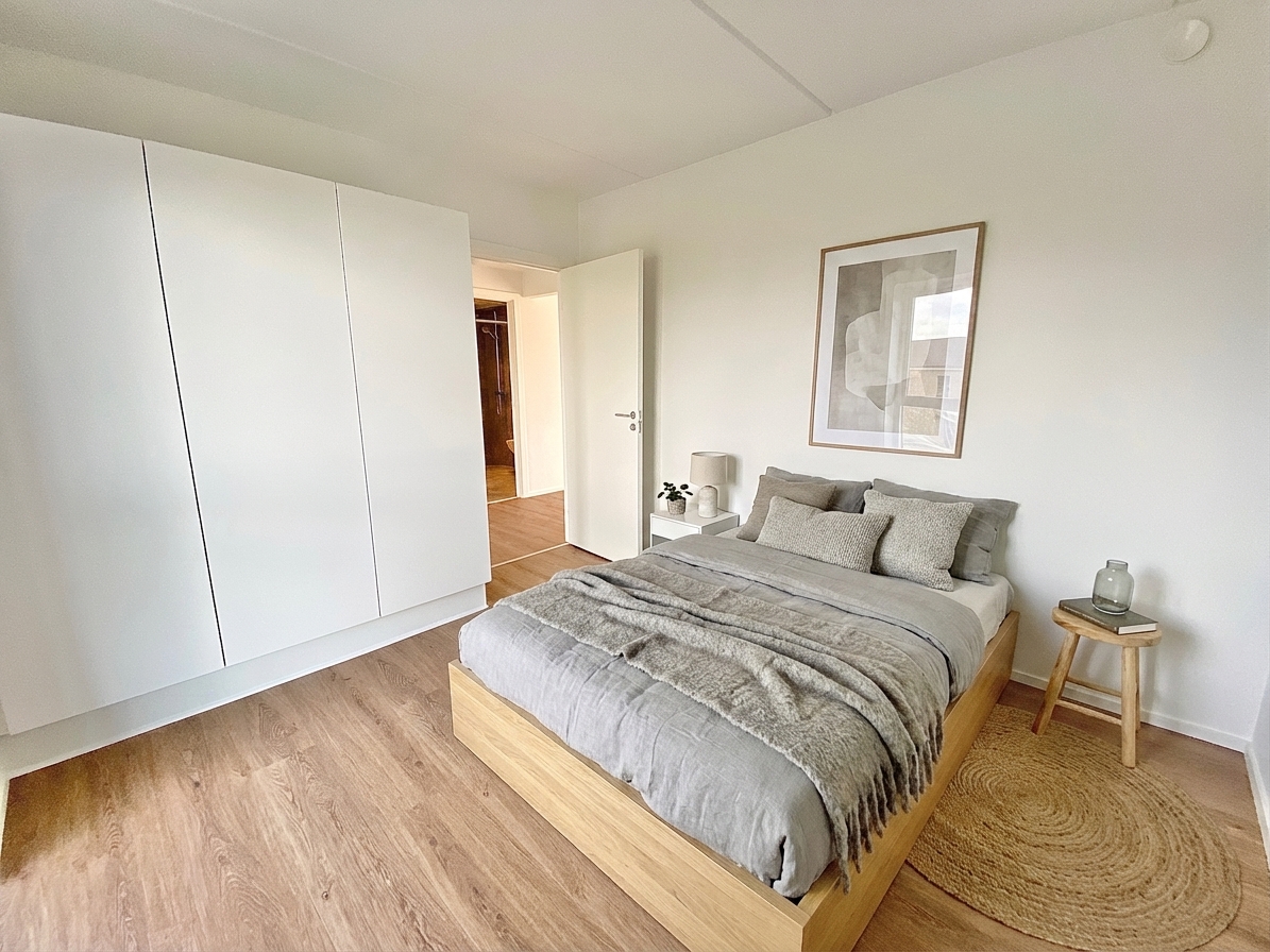 De tre soveværelser er rummelige og lyse, alle med indbyggede skabe, som giver godt med opbevaringsplads.
