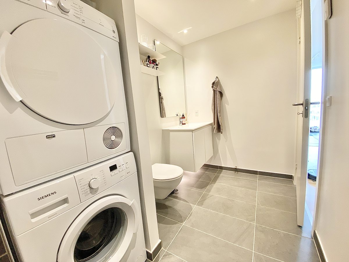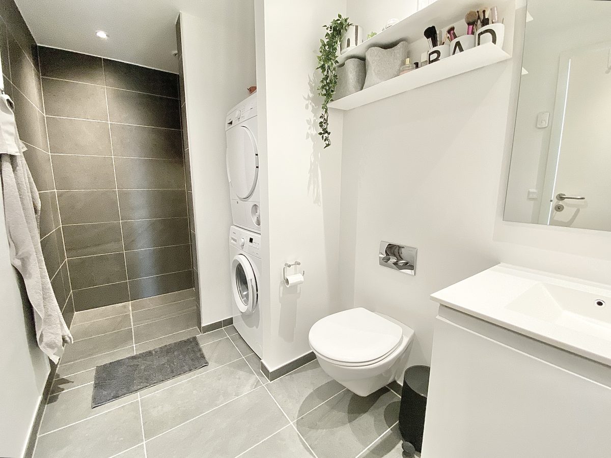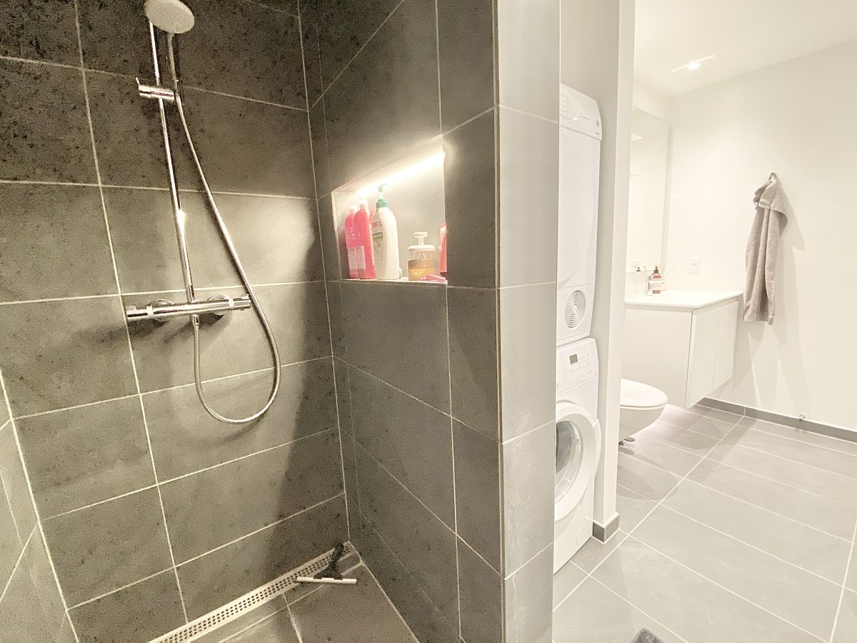 Badeværelset har en god størrelse og kommer med separat bruseniche samt med medfølgende vaskesøjle. Ligesom resten af boligen har badeværelset hyggelig gulvvarme og praktisk ventilationsanlæg.