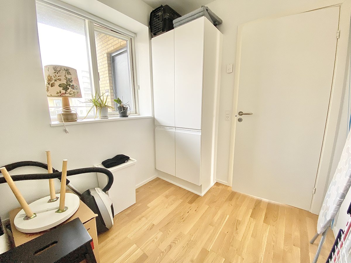 Lejligheden inkluderer et depotrum, og parkeringslicens til området er inkluderet i huslejen. Gæsteparkering er også til rådighed uden ekstra omkostninger.