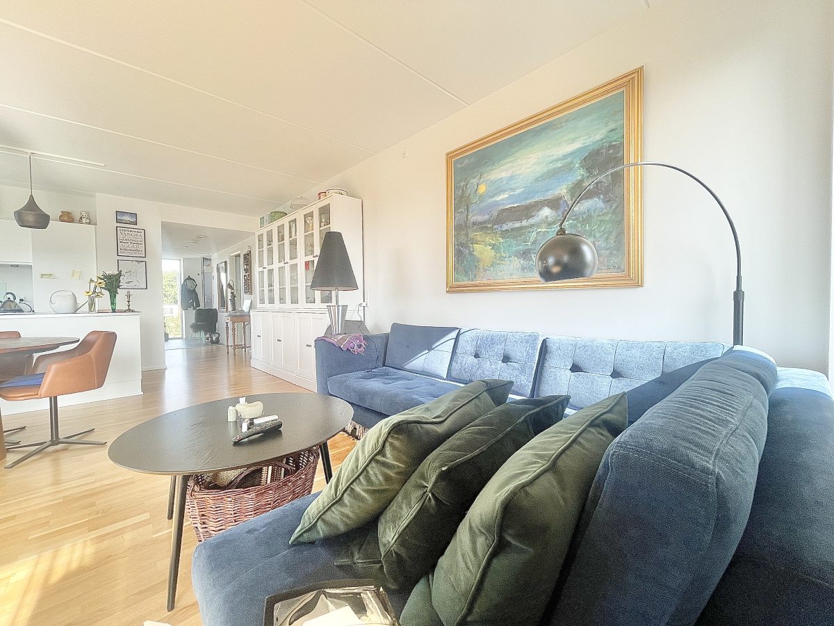 Fra køkkenet er der åben forbindelse til den indbydende stue, som ligeledes har udgang til altanen – det perfekte sted at nyde de mange solskinstimer.