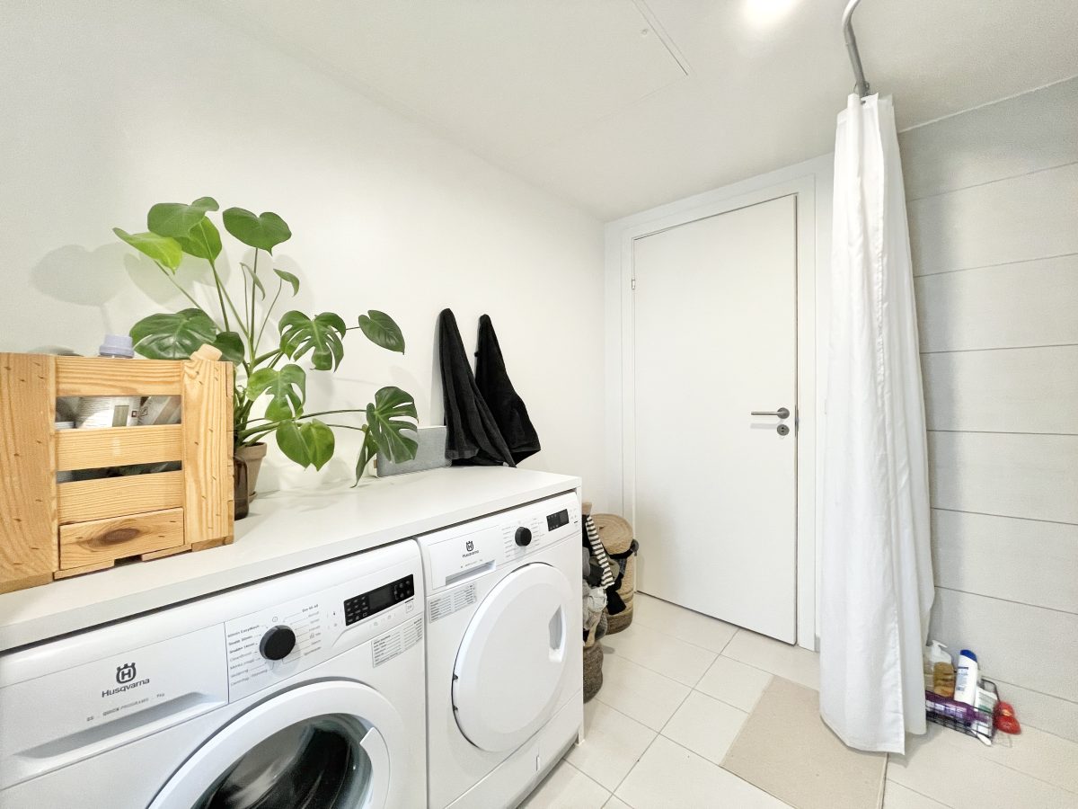 Køkkenet er flot med gode materialer og kommer med opvaskemaskine, køle/fryseskab, ovn, kogeplade og emhætte.