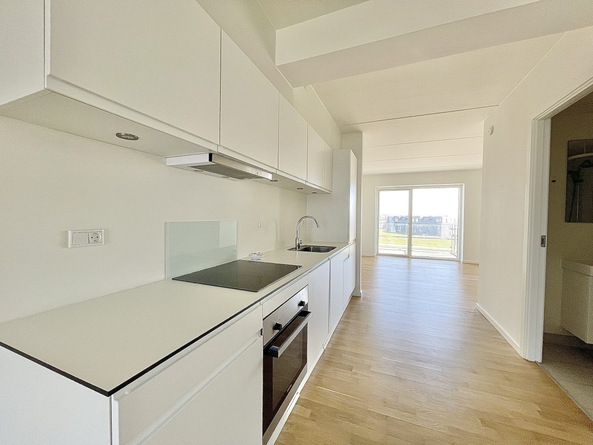 Her finder du denne lyse og nybyggede 2-værelses lejlighed med ALT i hvidevarer, gulvvarme og ventilationsanlæg.