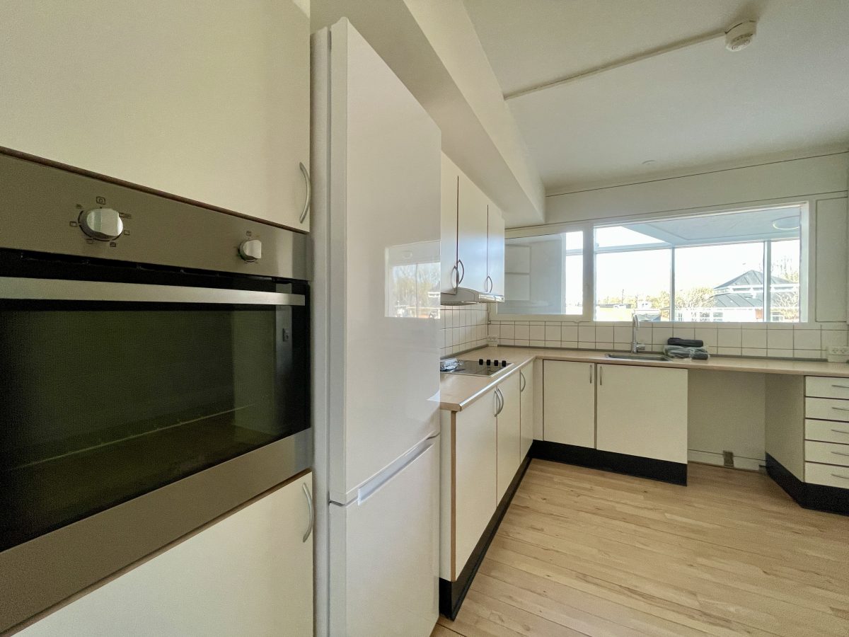 Køkkenet er praktisk indrettet med god opbevaringsplads. Her er der mulighed for at selv installere sin egen opvaskemaskine. Derudover har soveværelset endda eget badeværelse.